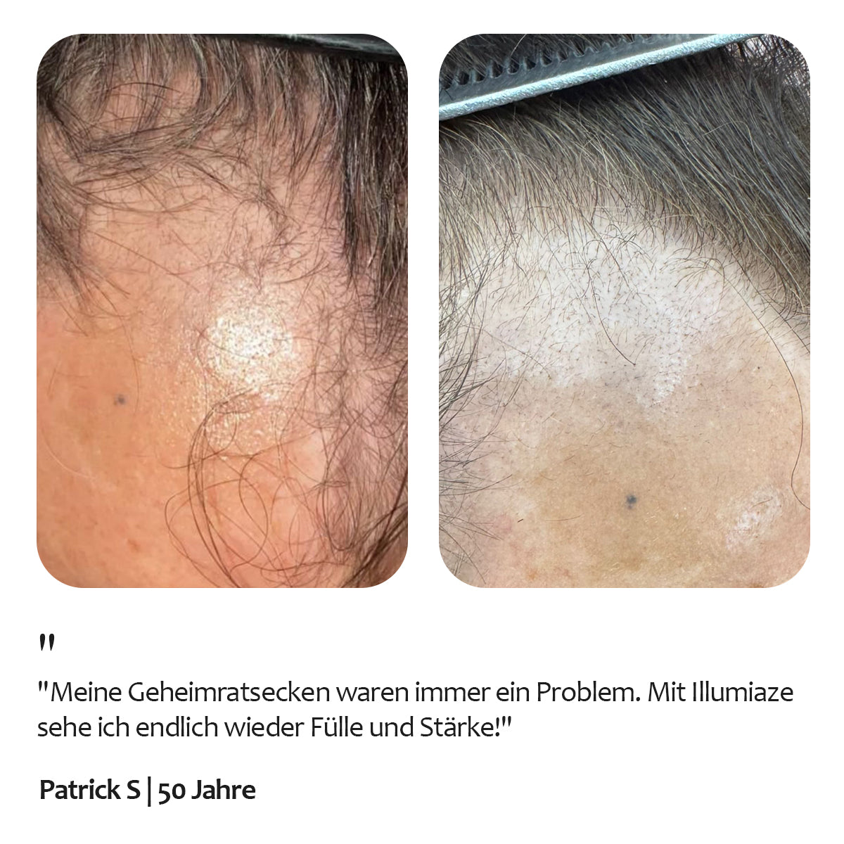 "Seit ich Illumiaze benutze, ist mein Haaransatz wieder sichtbar dichter. Ich fühle mich wieder jung – einfach top!"