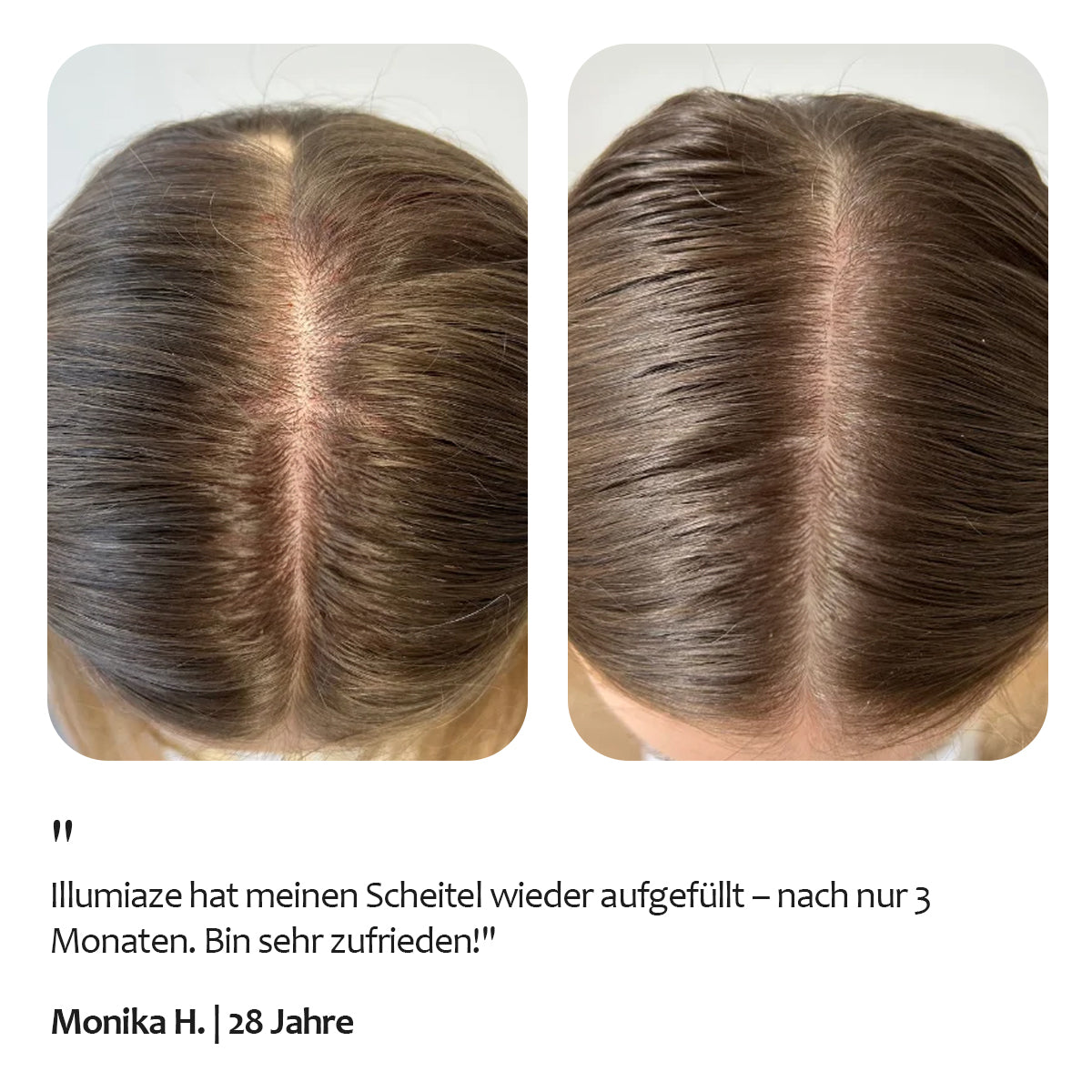 "Illumiaze hat bei mir schon nach 3 Monaten eine sichtbare Verbesserung gezeigt. Mein Haar fühlt sich dichter und gesünder an. Sehr zufrieden!"