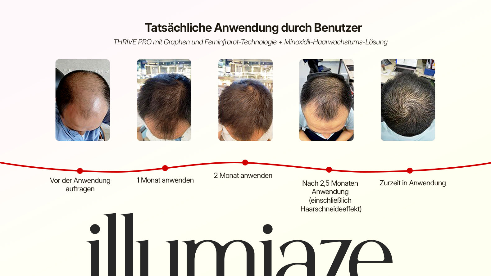 Lukas M. AUGUST 2024Verified BuyerSpürbare VerbesserungIch benutze die Illumaze-Drevice mit Graphen und Infrarot seit einem Monat – meine Haare fühlen sich kräftiger an und wachsen sichtbar schneller.